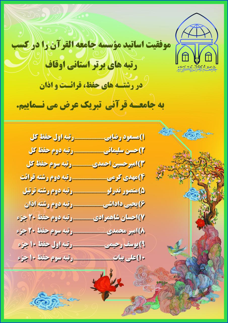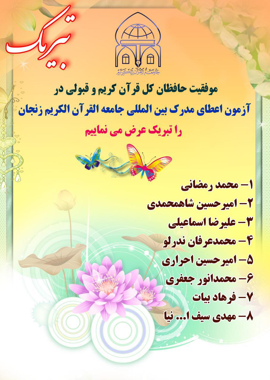 اسامی نفرات برگزیده در آزمون اعطای مدرک بین المللی حفظ کل قرآن کریم